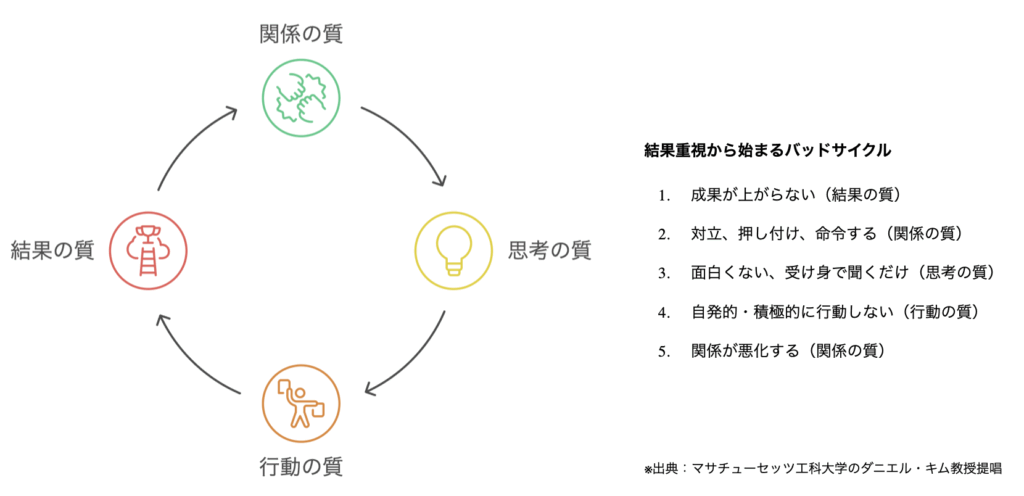 MITのダニエル・キム教授が提唱する「組織の成功循環モデル」でも、結果だけを急ぐと「悪循環」が始まると示されています。